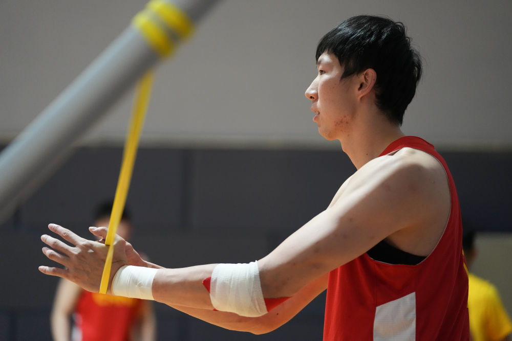 2月11日,中国男篮集训队队员周琦在推行课上。新华社发