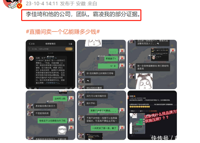 近日,有博主发文称我方被李佳琦和他的公司、团队霸凌了,原因即是她发了一条微博说我方卖的东西比李佳琦直播间的低廉,因为她个东谈主补贴了钱,遵守就被李佳琦公司投诉了。